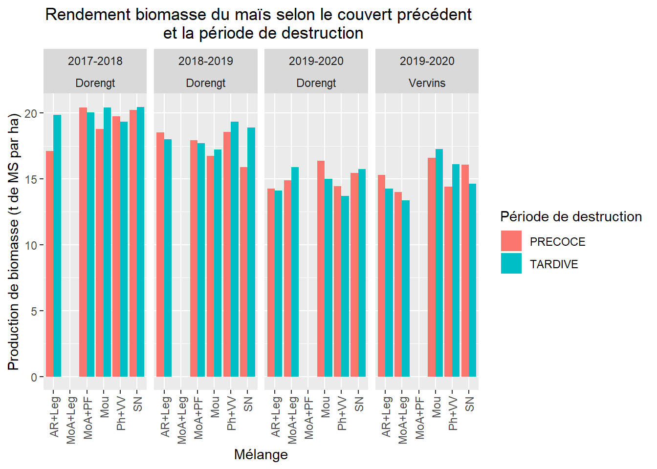 🌽 Retarder la destruction des couverts n’a pas d’effet sur le rendement de la culture suivante.