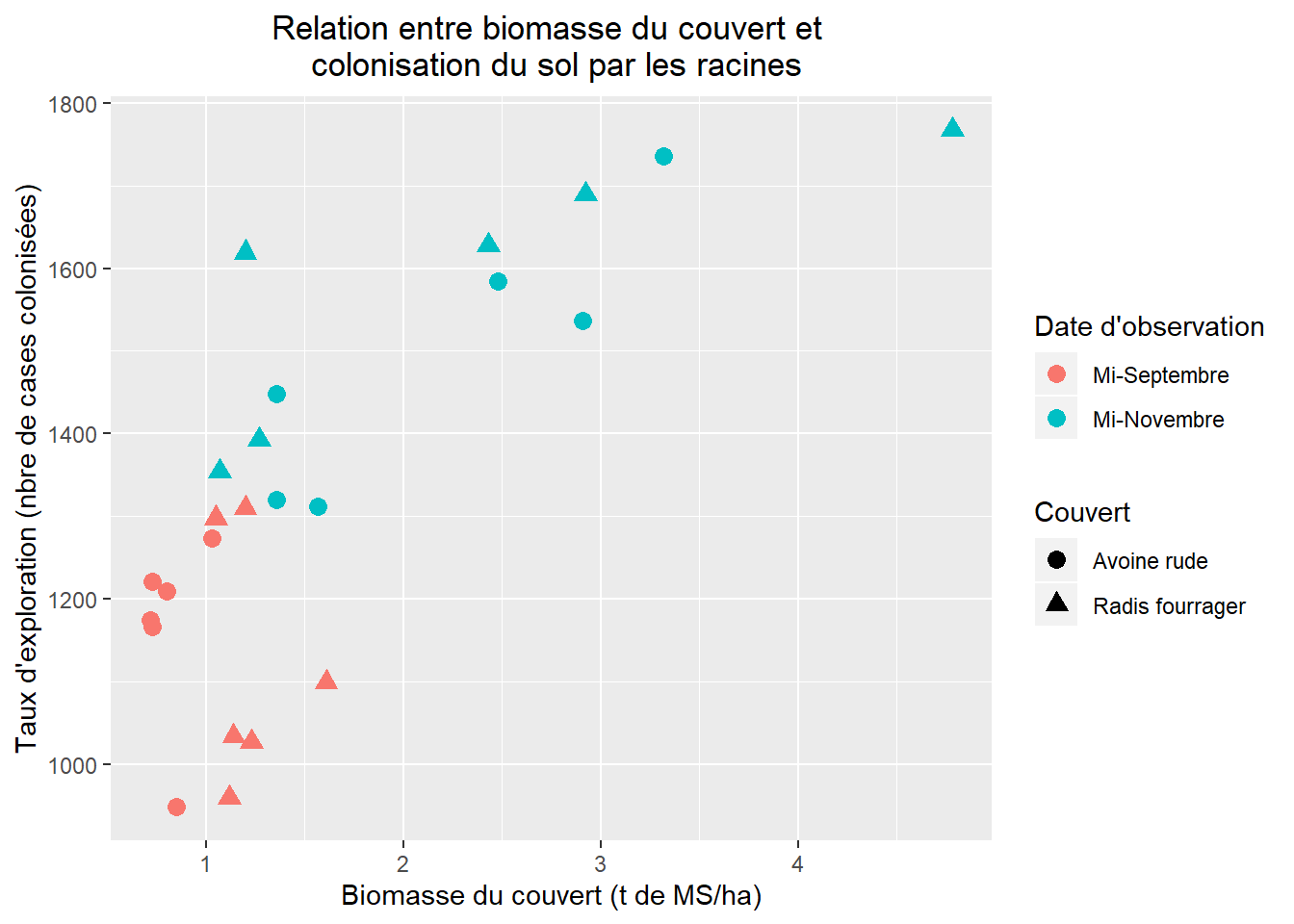 La biomasse aérienne du couvert est un indicateur de la densité racinaire et du taux d’exploration du profil. Corrélé à la biomasse, le taux d’exploration du profil augmente avec l’âge du couvert.