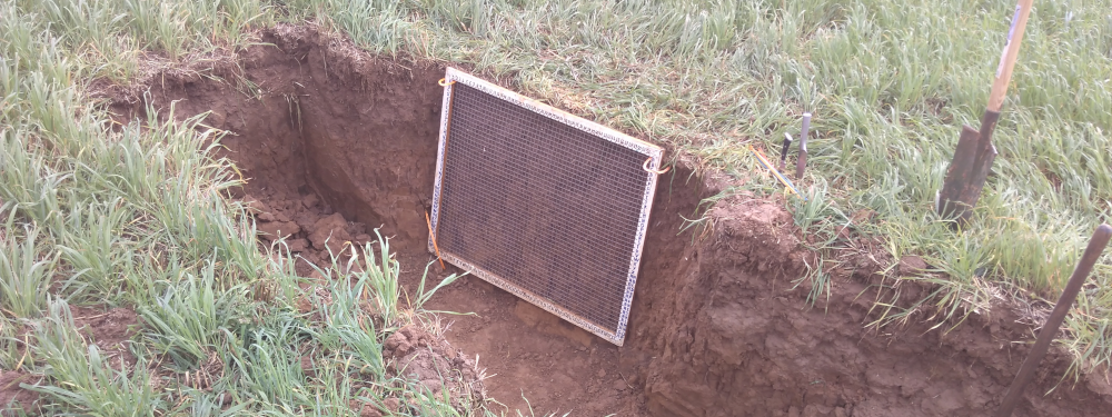 Pour répondre à toutes ces questions, un essai a été conduit pendant plusieurs années pour comparer plusieurs couverts (Avoine et Radis fourrager à un témoin conduit en sol nu). En 2017, l’essai a été mené en bandes de grande taille. A partir de 2018, le dispositif expérimental est implanté en blocs randomisés. Avant d’implanter l’essai, il a été nécessaire de s’assurer, chaque année, que la parcelle qui l’accueillerait comportait un tassement avéré. Ainsi la parcelle a été recherchée à partir d’un type de système (forte proportion de cultures industrielles), de l’historique de la parcelle (interventions réalisées en mauvaises conditions). Le choix de la parcelle a été finalisé par la réalisation d’un mini profil 3D . Les essais conduits en 2017 et 2018 ont été implantés dans des parcelles en système avec labour occasionnel. Par ailleurs, ces parcelles ont toutes les deux vues remonter la profondeur du travail du sol au fil des années et se créer par conséquent un horizon appelé H6 situé entre la profondeur de travail du sol actuelle et le labour le plus profond jamais réalisé. Cet horizon est particulièrement sensible aux tassements car les labours profonds passés ont brisé la structure prismatique telle qu’on peut la trouver dans l’horizon pédologique. De plus étant situé sous le travail du sol actuel, il n’est jamais repris malgré qu’il soit tassé.